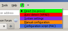 The colors used to indicate the current proxy mode can be set in the extension preferences.